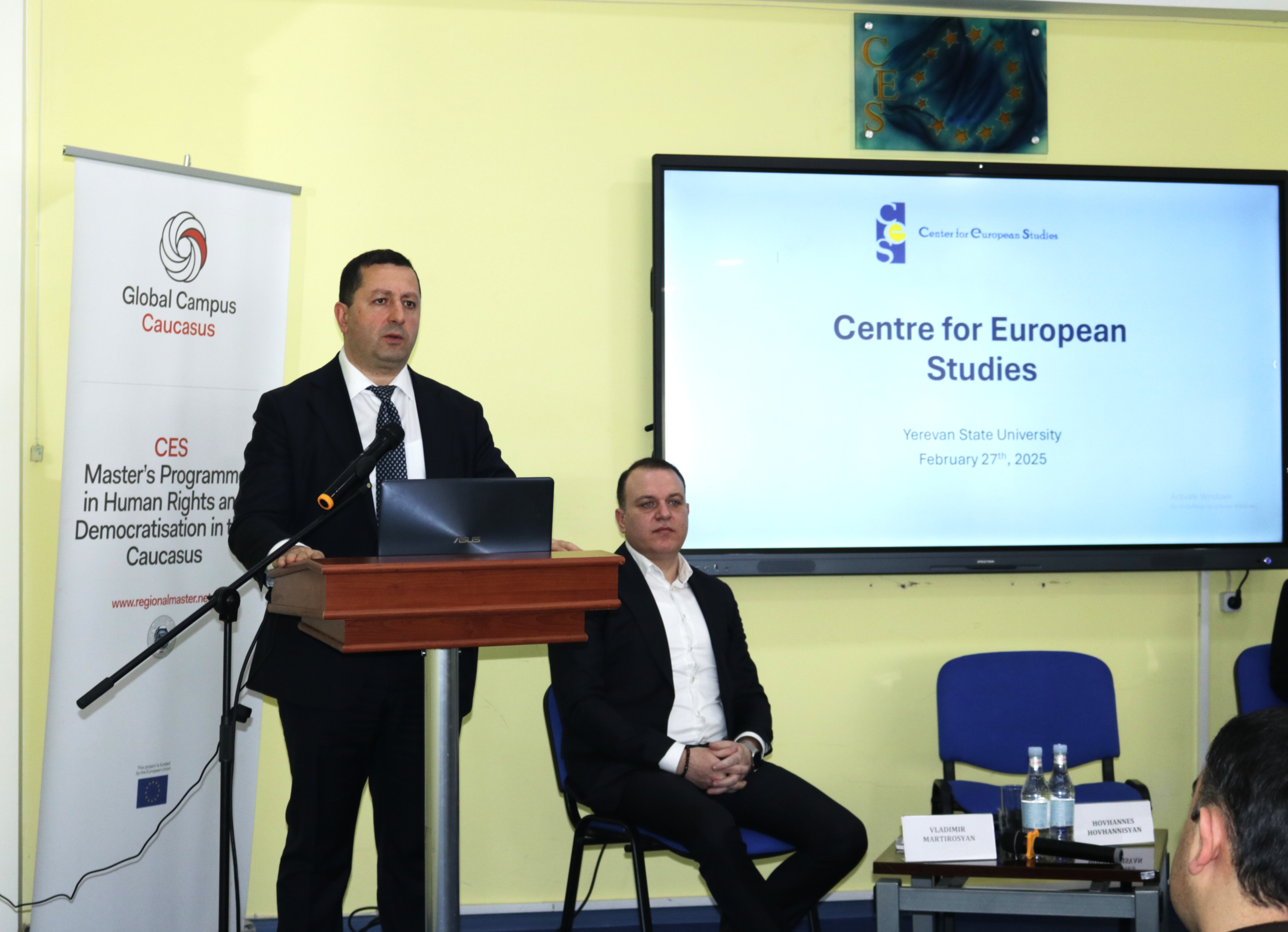 The event started with the welcome and opening speeches by the director of the Centre, Dr Vladimir Martirosyan and the Rector of the Yerevan State University, Dr Hovhannes Hovhannisyan and the presentation CES history, vision and activities.