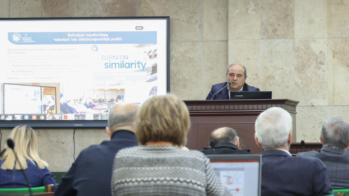 Տնօրենն ընդգծեց, որ ստեղծվել են համակարգչային երկու նոր լաբորատորիաներ, կատարելագործվել է «E-learning» հարթակը, արդիականացվել են «Registrar» ու «Supervision» համակարգերը, համալսարանական «Moodle» («E-learning») ուսումնական միջավայրին ամբողջությամբ ինտեգրվել է ակադեմիական ազնվության ապահովման «Turnitin» համակարգը։