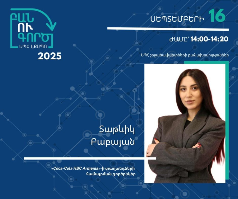 Ժամը 14:00–14:20-ը ելույթով հանդես կգա «Coca-Cola HBC Armenia»-ի տաղանդների համալրման գործընկեր Տաթևիկ Բաբայանը: