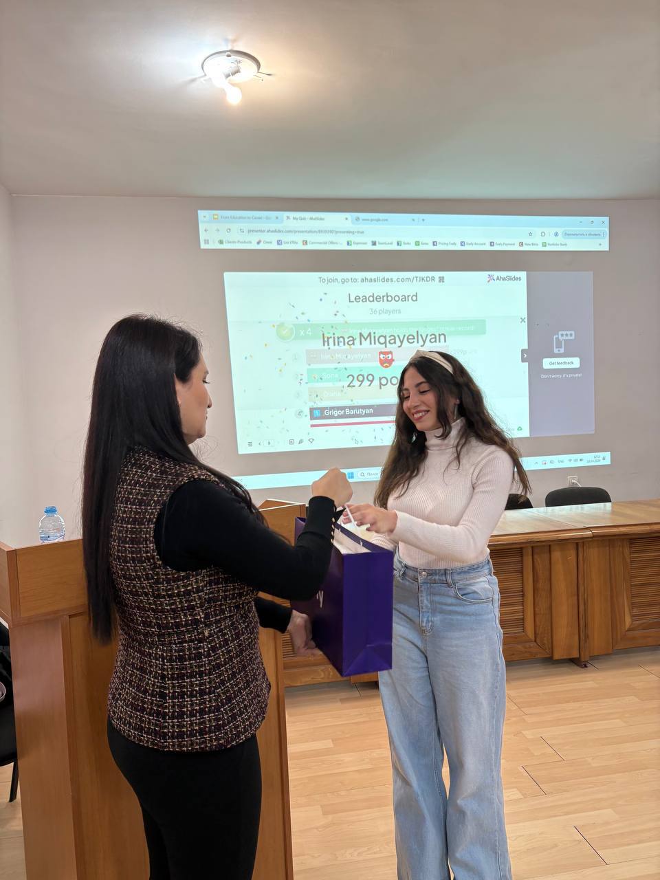 Բանախոսությանը հաջորդեց գործնական աշխատանքների փուլը, որի ընթացքում ուսանողները ստացան առաջադրանք՝ մշակել զբոսաշրջային փաթեթի մոդել՝ կիրառելով ձեռք բերված գիտելիքները։ Ավարտին ներկայացրին իրենց նախագծերը, ստացան փորձագիտական դիտարկումներ և մասնակցեցին արդյունքների համատեղ քննարկմանը։