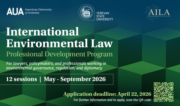 The International Environmental Law Professional Development Program is being launched in collaboration with Yerevan State University, the American University of Armenia, and the Armenian International Law Association (AILA) for lawyers, policymakers, and professionals working in environmental governance, regulation, and diplomacy.