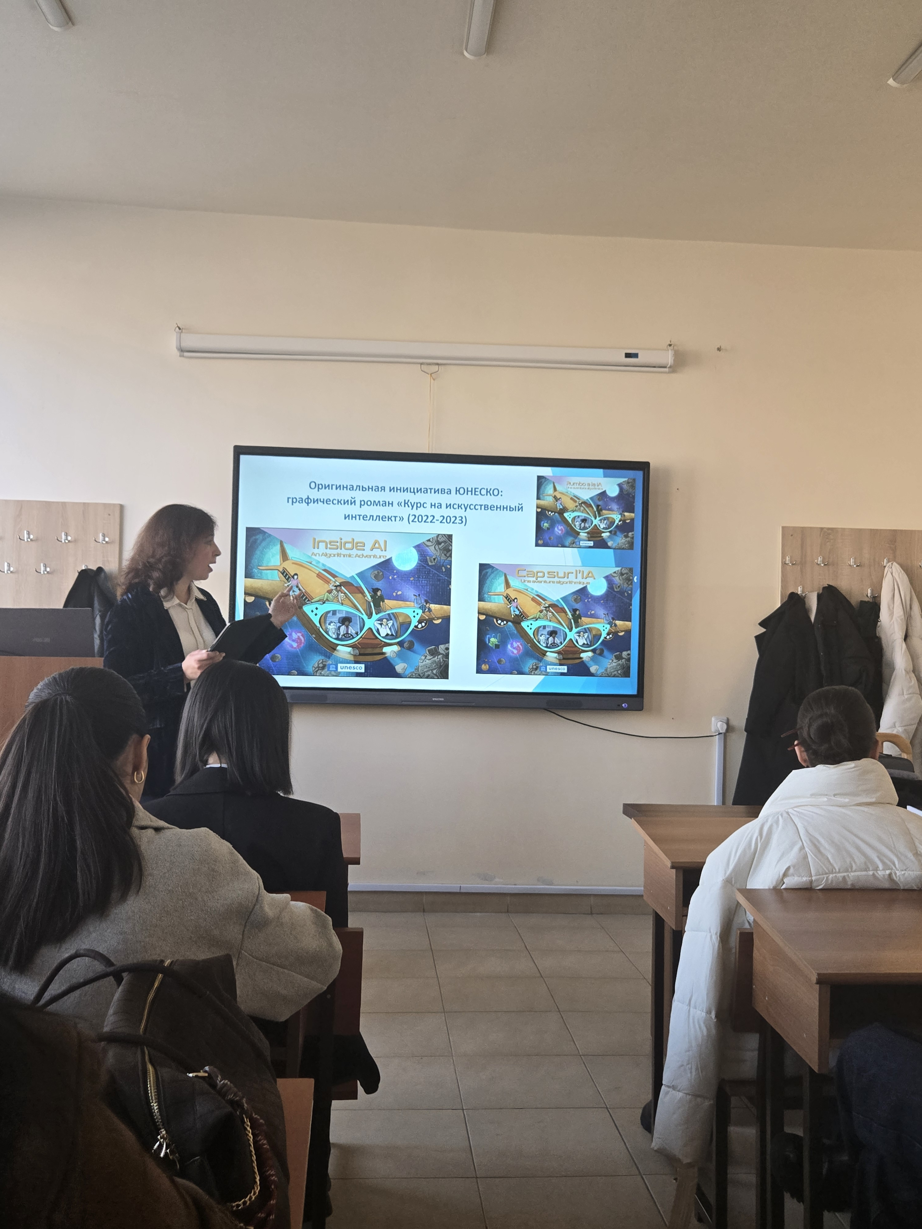 On December 4, 2025, the Chair of Media Studies and Semiotics of the YSU Faculty of Journalism hosted an open lecture titled "UNESCO Publications on Artificial Intelligence: A Semiotic Perspective" by Inna Merkoulova. The lecture focused on the analysis of UNESCO's graphic novel "Inside Artificial Intelligence: An Algorithmic Adventure" (UNESCO, 2022), as well as a discussion of the humanitarian and intersemiotic aspects of UNESCO’s international normative documents.