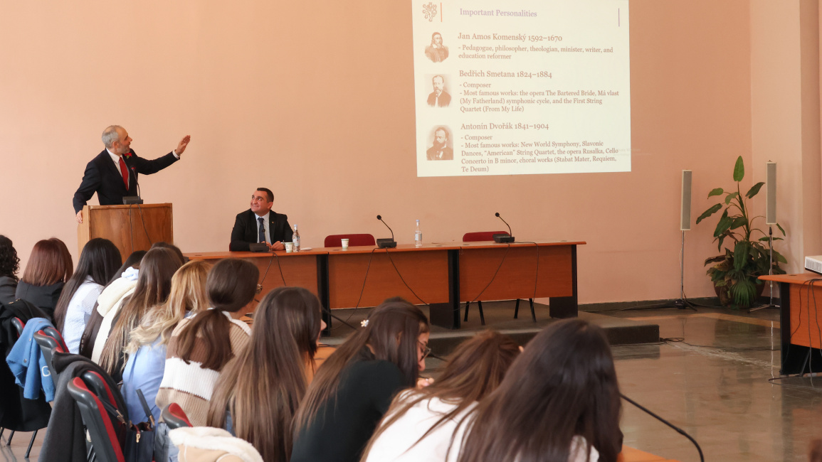 During the meeting, the ambassador outlined the key stages of the Czech Republic's historical development, highlighting the formation of medieval statehood, the period of cultural revival, and the establishment of the modern Czech state. He stressed the importance of strengthening democratic institutions and building a society grounded in European values.