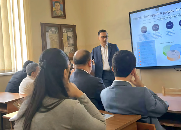 On November 25 of this year, Aleksandr Shaghikyan, Partner and Head of Advisory Services at the audit, tax, and advisory company BDO Armenia and Chairperson of the Board of the Oxford Alumni Business Club of Armenia, delivered a lecture at the YSU Faculty of Economics and Management.