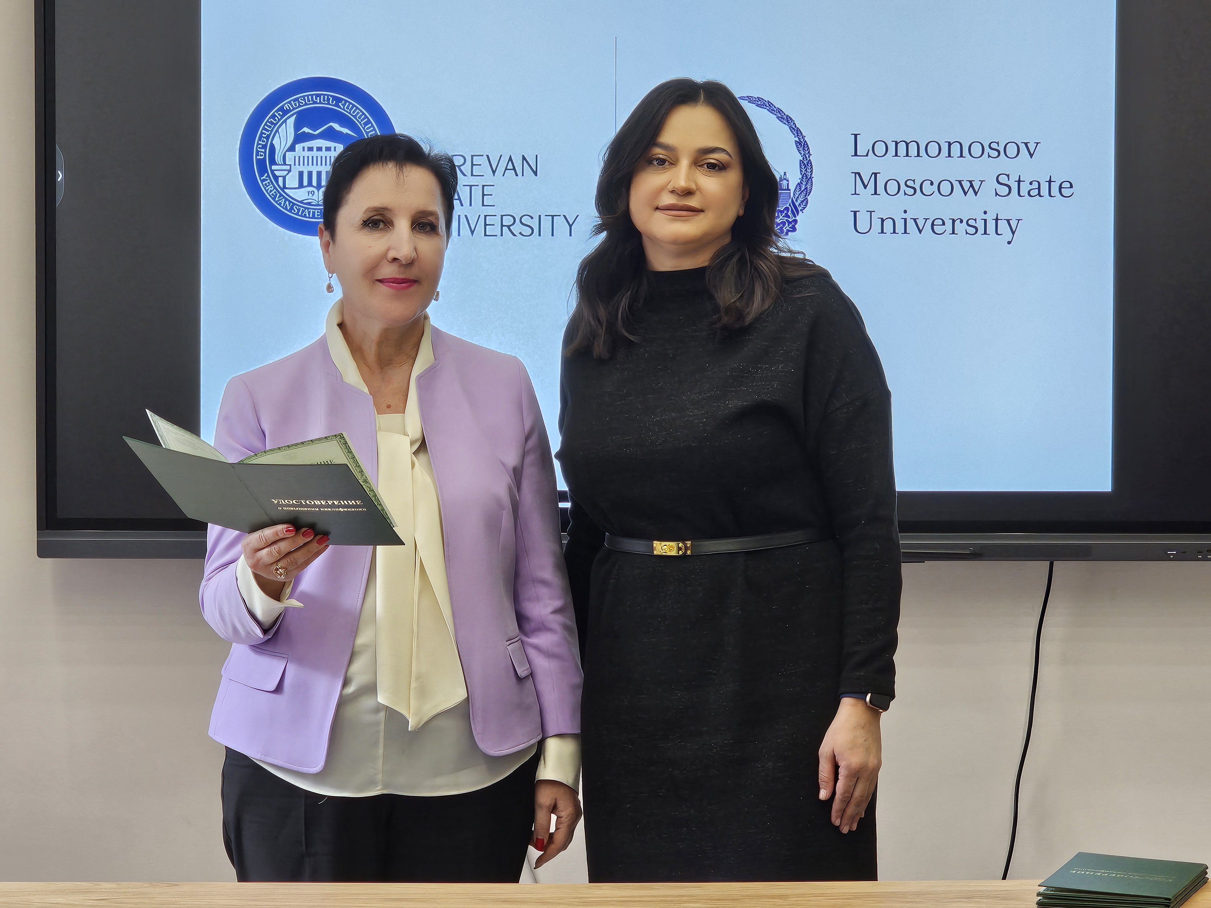 The Faculty of Economics and Management at Yerevan State University hosted Inessa Avanesova, Associate Professor at the Moscow School of Economics of Lomonosov Moscow State University. During the visit, certificates for participation in professional development courses were presented to the faculty members of the YSU Faculty of Economics and Management.