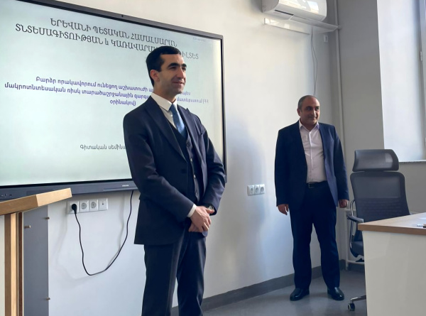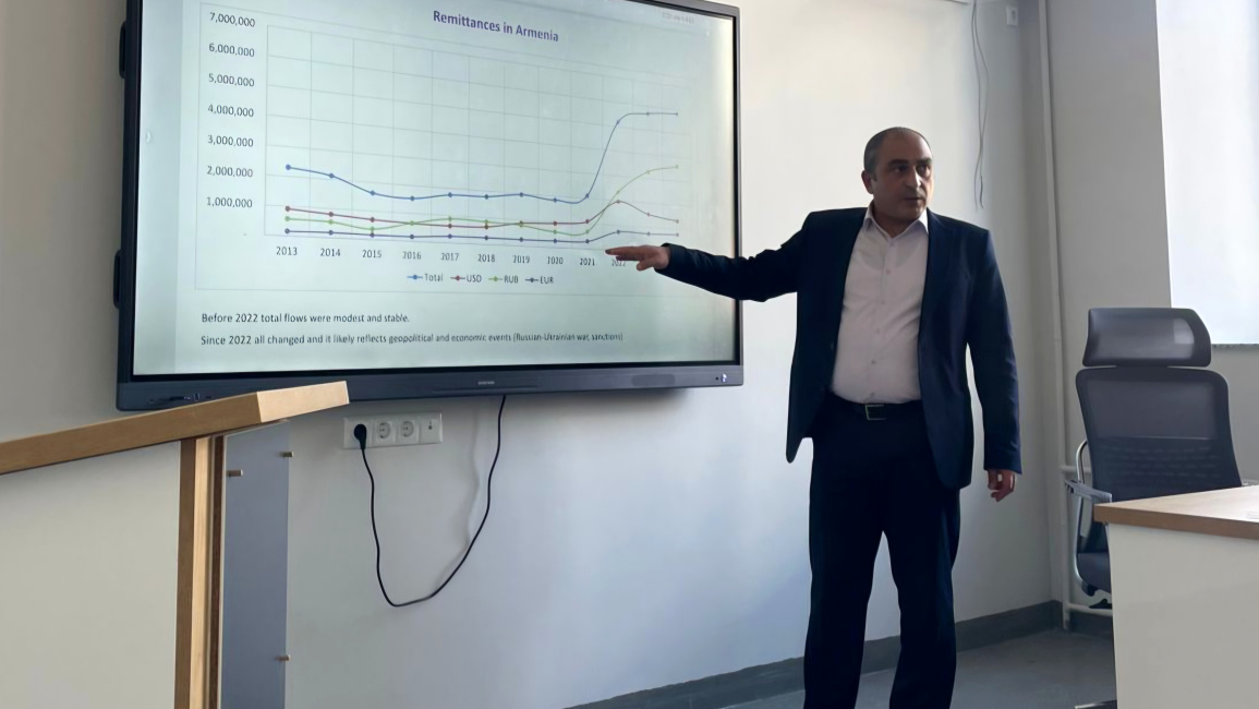 The seminar featured a presentation by Associate Professor Grigor Hayrapetyan, Head of the Chair of Economics and International Economic Relations, who shared the findings of his research.