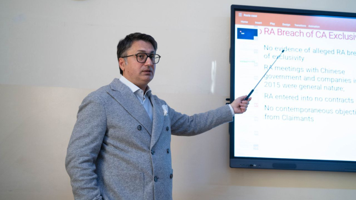 Hayk Hovhannisyan presented the students with an actual international arbitration case, detailing the positions of the parties, the circumstances that arose alongside the case, and the legal issues that proved decisive in resolving the dispute. He thoroughly explained how a lawyer's strategic work is developed, from preliminary analysis to constructing arguments and presenting counterarguments.
