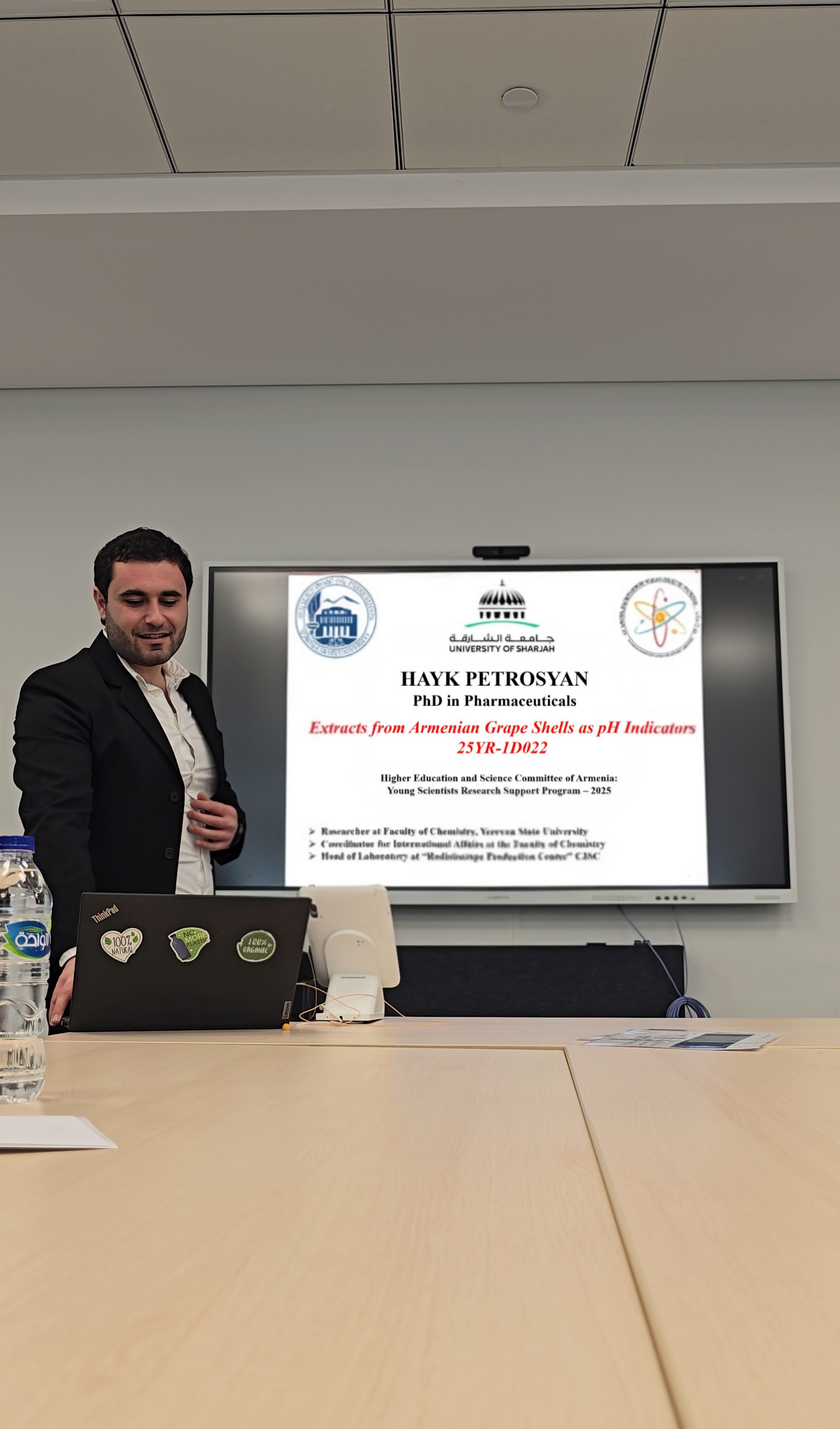 As part of the Armenian Higher Education and Science Committee's "Research Support Program for Young Scientists–2025", Hayk Petrosyan, researcher at the Inorganic Chemistry Laboratory of the YSU Research Center of Chemistry and program director, together with Artur Nigaryan, lecturer at the Chair of Inorganic and Analytical Chemistry, YSU Faculty of Chemistry, visited the University of Sharjah. The visit aimed to explore potential avenues for future collaboration and joint scientific projects.