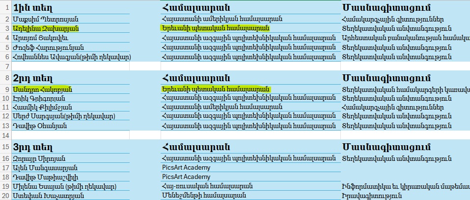YSU Informatics and Applied Mathematics students Adelina Zakharyan and Sandro Hakobyan achieved outstanding results, securing first and second place, respectively. Additionally, in the individual competition, YSU student Zhenya Mirzoyan won the honorable first place, while four other students from the faculty earned prize-winning positions.