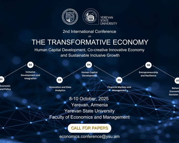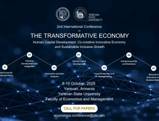 International Conference at YSU: "THE TRANSFORMATIVE ECONOMY - Human Capital Development, Co-creative Innovative Economy and... Start 08.10.2025 Completion 10.10.2025