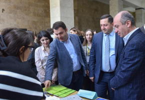 ԵՊՀ ռեկտոր Հովհաննես Հովհաննիսյանը, զարգացման և նորարարությունների գծով պրոռեկտոր Միքայել Հովհաննիսյանը, գիտական հարցերի գծով պրոռեկտոր Ռաֆայել Բարխուդարյանը շրջեցին տաղավարներով, ուսումնասիրեցին մասնակիցների աշխատանքները՝ ներկաների հետ քննարկելով բնագավառի նորարարությունները, խնդիրները և դրանց լուծման ուղիները: