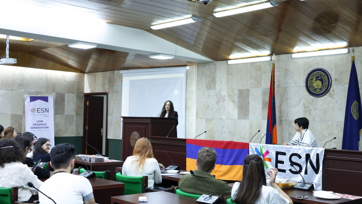 The "Intercultural Evening" organized by the Erasmus Student Network Yerevan was held at YSU aiming to bring together Armenian and foreign students, to familiarize them with the cultures of different countries in an interactive environment, as well as to present the opportunities of the Erasmus Student Network.