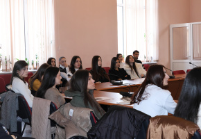 A meeting with Tobias Studemann, Director of the East European Office at Free University of Berlin, Germany, was held at YSU Balian Hall. During the meeting, Tobias Studemann presented the opportunities offered by Free University of Berlin as part of the Erasmus+ and other exchange programs.