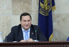 Following the discussion with the rector, the MEPs met with YSU academic staff and students. Addressing the delegation, Hovhannes Hovhannisyan stated: "Most of the students present here are from the Faculty of International Relations, who will eventually become ambassadors, diplomats, or work in international organizations. Therefore, this meeting is particularly important for them. The university maintains intensive international cooperation, through which ambassadors frequently visit us and deliver lectures to students."