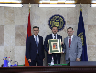 The President of the Parliamentary Assembly of the Council of Europe (PACE), Theodoros Roussopoulos, visited Yerevan State University, accompanied by Armenian MP Vladimir Vardanyan and Armenia’s Permanent Representative to the Council of Europe, Ambassador Extraordinary and Plenipotentiary Armen Papikyan. During his visit, Theodoros Roussopoulos delivered a lecture on the role and objectives of the Council of Europe (CoE), underscoring the significance of human rights and democracy.