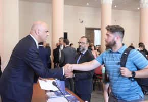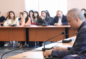 The meeting was attended by YSU faculty members, students, and representatives from other Armenian and international academic institutions. At the conclusion of the meeting, Alain Berset presented participants with his authored report titled "Towards a New Democratic Pact for Europe."
