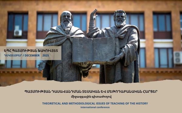 2025 թվականի դեկտեմբերի 11-12-ը ԵՊՀ պատմության ֆակուլտետի նախաձեռնությամբ կանցկացվի «Պատմության դասավանդման տեսական և մեթոդաբանական հարցեր» խորագրով միջազգային գիտաժողովը։