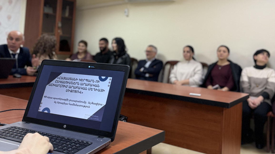 A presentation and discussion of the results of the research conducted within the framework of the "Armenia's Image and Perceptions in the Arab World through Arab Media" project took place in the conference hall of the Institute for Armenian Studies (IAS), Yerevan State University.