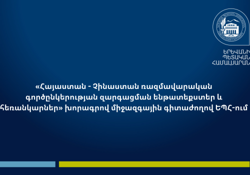 «Հայաստան - Չինաստան ռազմավարական գործընկերության զարգացման ենթատեքստեր և հեռանկարներ» խորագրով միջազգային գիտաժողով ԵՊՀ-ում Ս.թ. նոյեմբերի 25-ին՝ ժամը 10:00-ին, ԵՊՀ գիտխորհրդի նիստերի դահլիճում տեղի կունենա «Հայաստան - Չինաստան ռազմավարական գործընկերության զարգացման ենթատեքստեր և հեռանկարներ» խորագրով միջազգային գիտաժողով: