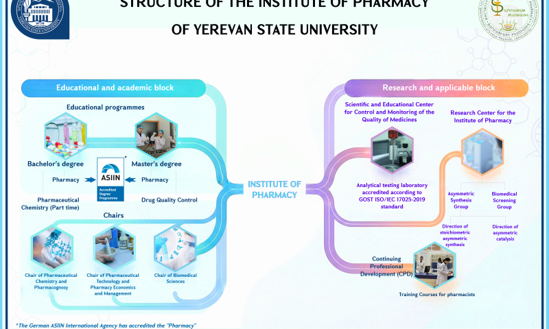 Արի՛ ԵՊՀ ֆարմացիայի ինստիտուտ Ֆարմացիայի ինստիտուտը՝ գիտահետազոտական առաջատար կենտրոն Ֆարմացիայի ինստիտուտն ամփոփում է 2025 թվականը «Մասնագիտություն»․ դեղագիտությունը՝ բժշկության և գիտության սահմանագծում (10.06… Հավատարմագրվել են «Ֆարմացիա» բակալավրի և մագիստրոսի կրթական ծրագրերը Դեղերի որակի հսկման և մոնիթորինգի կենտրոնը պետական հավատարմագիր է ստացել Ֆարմացիայի ինստիտուտի ուսանող Ռուզաննա Բեկջանյանը բժշկության ոլորտում «Լավագու… Դեղերի որակի հսկման և մոնիթորինգի գիտաուսումնական կենտրոնի լաբորատորիա Ֆարմացիայի գիտահետազոտական կենտրոն Ֆարմակագնոզիայի ուսումնական լաբորատորիա Կենսատեխնոլոգիայի լաբորատորիա Ընդհանուր հիգիենայի ուսումնական լաբորատորիա Թունաբանական քիմիայի լաբորատորիա Դեղերի արդյունաբերական արտադրության ուսումնական լաբորատորիա Դեղերի ներդեղատնային պատրաստման ուսումնական լաբորատորիա Ֆարմքիմիայի լաբորատորիա Ֆարմտեխնոլոգիայի և ֆարմացիայի էկոնոմիկայի ու կառավարման ամբիոնի գիտաուսումնական… «Դեպի բուհ»` ԵՊՀ ֆարմացիայի ինստիտուտ Ֆարմացիայի ինստիտուտի պաստառներ