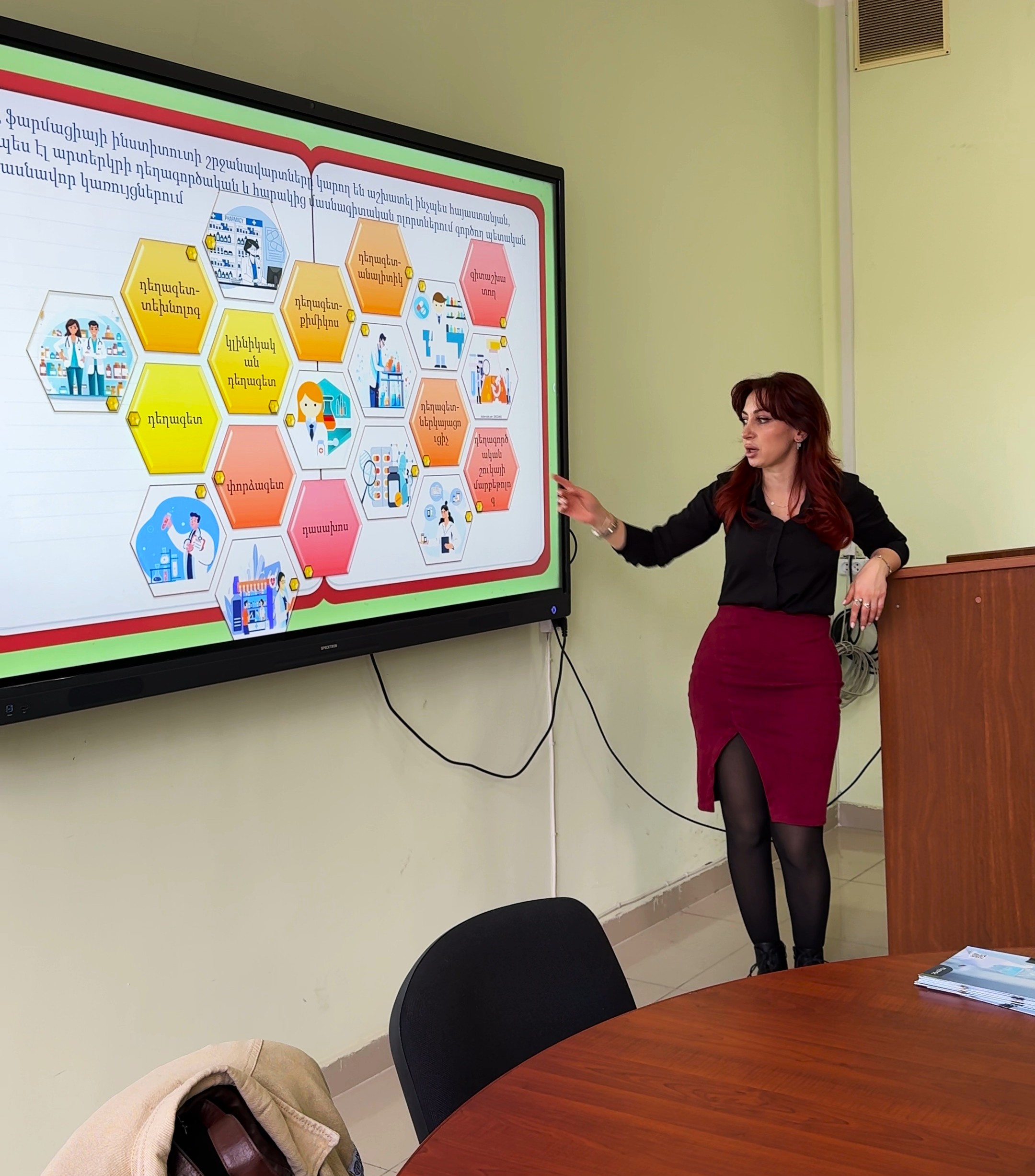 Այցելությունների մեկնարկին աշակերտներին սահիկաշարի միջոցով ներկայացվեցին Ֆարմացիայի ինստիտուտի կառուցվածքը, կրթական ծրագրերը և դեղագետի մասնագիտության արդիականությունն ու լայն հնարավորությունները ժամանակակից աշխատաշուկայում։ Այնուհետև աշակերտները շրջայց կատարեցին ինստիտուտի ուսումնական և գիտական լաբորատորիաներում՝ տեղում ծանոթանալով նորագույն սարքավորումներին և հետազոտական միջավայրին։