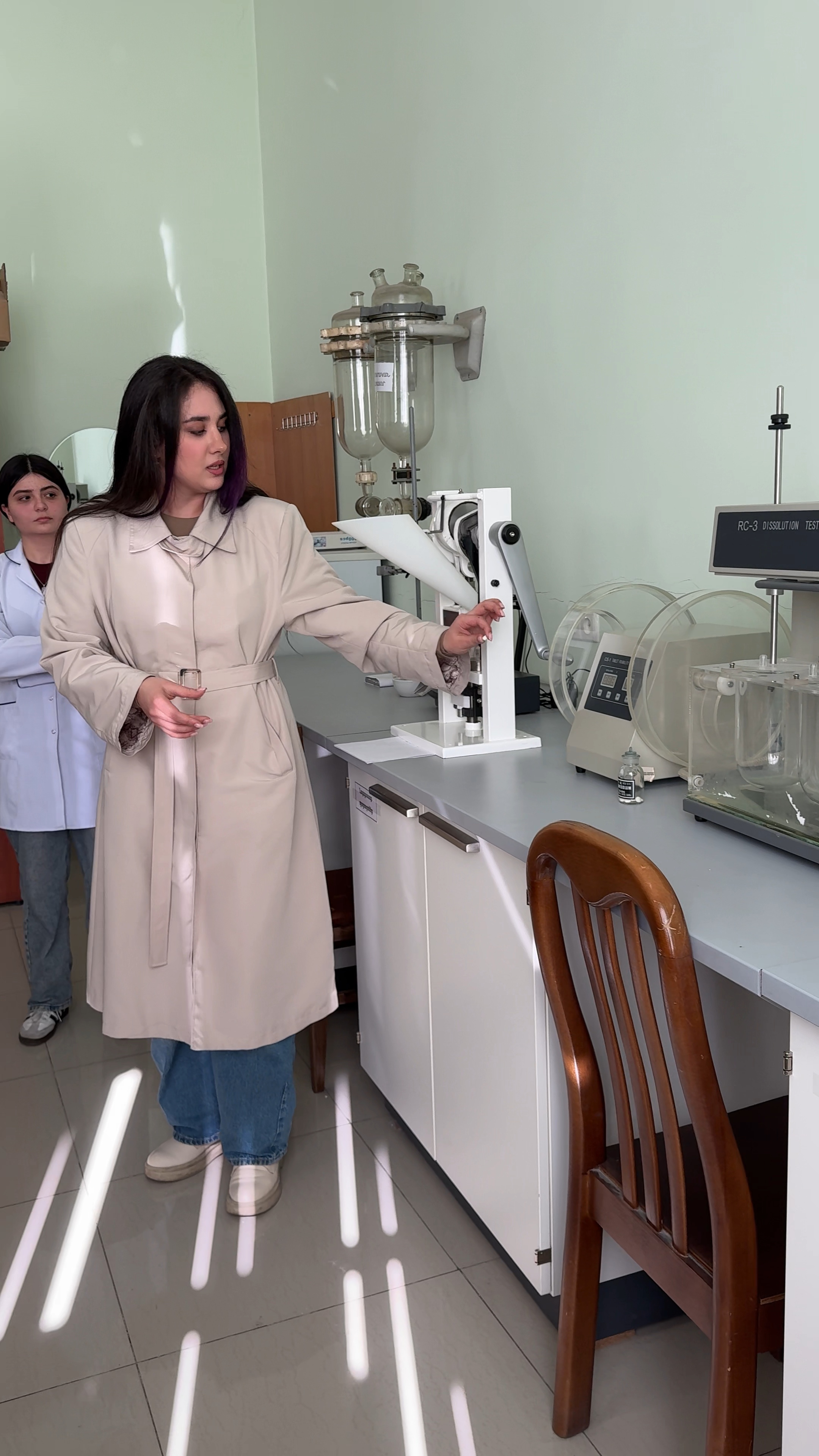 Մասնակիցները ծանոթացան դեղաձևերի որակի ստուգման ժամանակակից մեթոդներին՝ կիրառելով մասնավորապես դեղահատերի մաշվելիության (Friability) և լուծելիության (Dissolution) որոշման սարքավորումները: