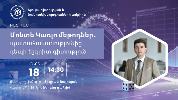 Ս.թ. մարտի 18-ին՝ ժամը 14:30-ին, ԵՊՀ ֆիզիկայի ինստիտուտի կոնֆերենց դահլիճում նյութագիտության և նանոտեխնոլոգիաների ամբիոնի նախաձեռնությամբ տեղի կունենա ««Մոնտե Կառլո» մեթոդներ․ պատահականությունից դեպի ճշգրիտ գիտություն» խորագրով բաց դաս: