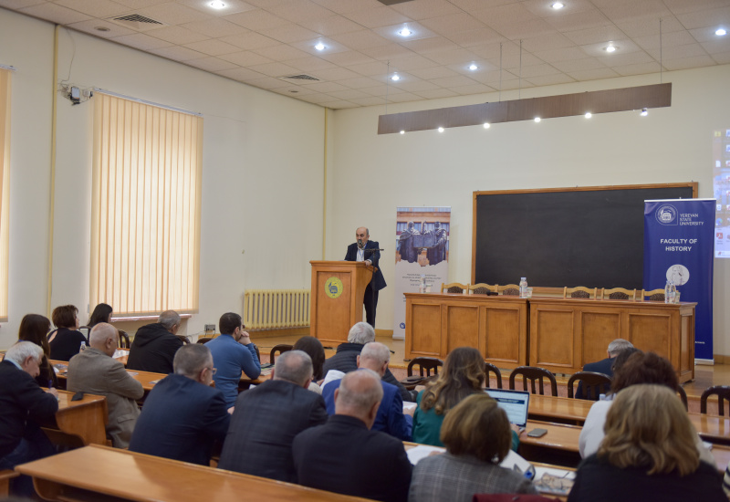 ԵՊՀ-ում պատմության ֆակուլտետը գործում է համալսարանի հիմնադրման օրից՝ 1919 թվականից։ Այն սկզբում գործել է ինքնուրույն, ապա հանդես եկել որպես Պատմալեզվագրական ֆակուլտետի բաժին, այնուհետև՝ Հասարակագիտական բաժանմունքի ենթաբաժին, ապա՝ Մանկավարժության, Արևելագիտության ու պատմագրության ֆակուլտետների բաժին։ Որպես ինքնուրույն միավոր՝ Պատմության ֆակուլտետը կազմավորվել է 1936 թ․: