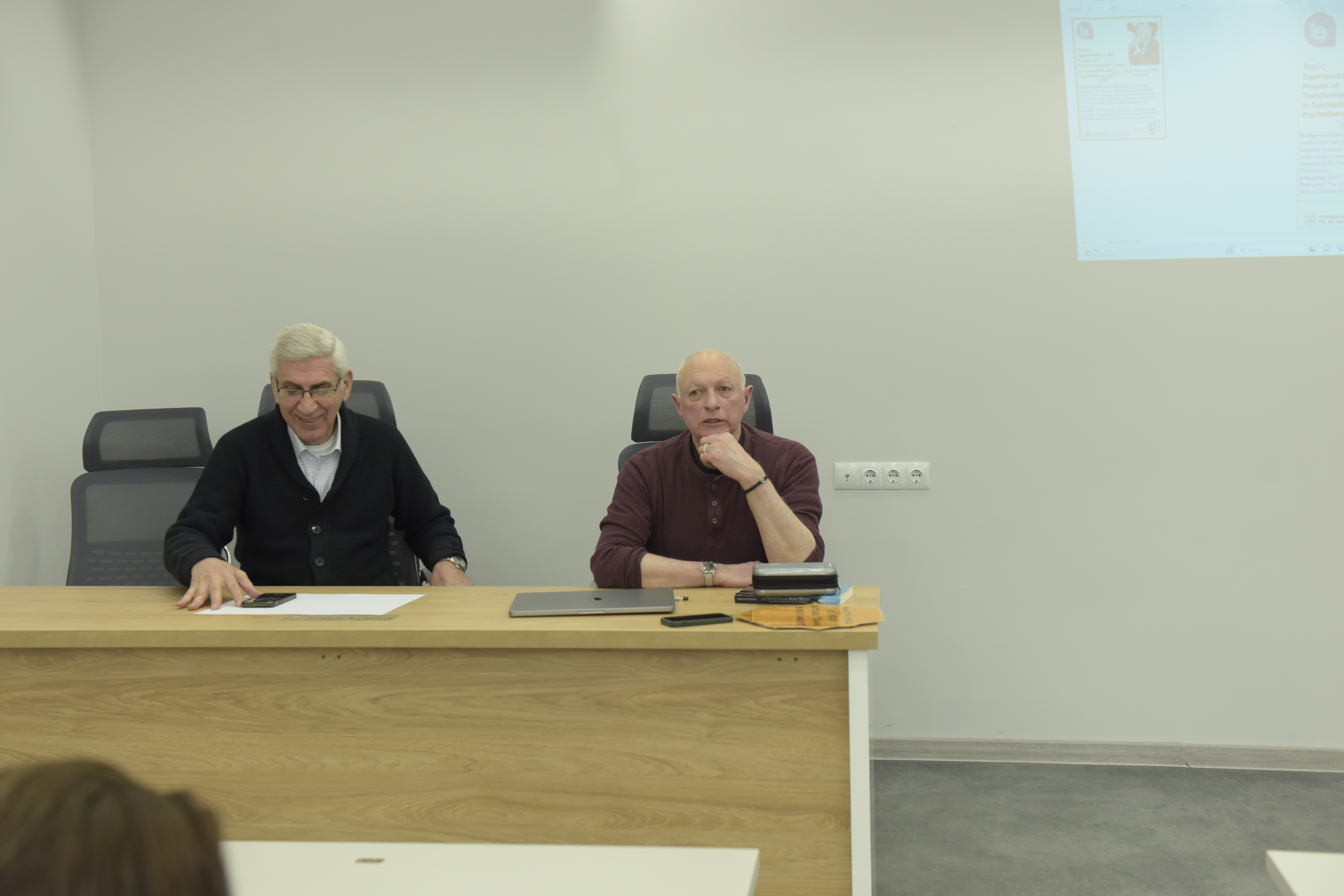 Սեմինարի առաջին փուլում հեղինակը ներկայացրեց ժամանակակից հոգեթերապիայի սկզբունքների և դիրքորոշումների վերաբերյալ տեսական գիտելիքներ։ Հագեցած մասնագիտական քննարկմանը հնչեցին հարցադրումներ՝ ժամանակակից հոգեթերապևտի դերին, գործառույթներին և մեթոդներին վերաբերող։