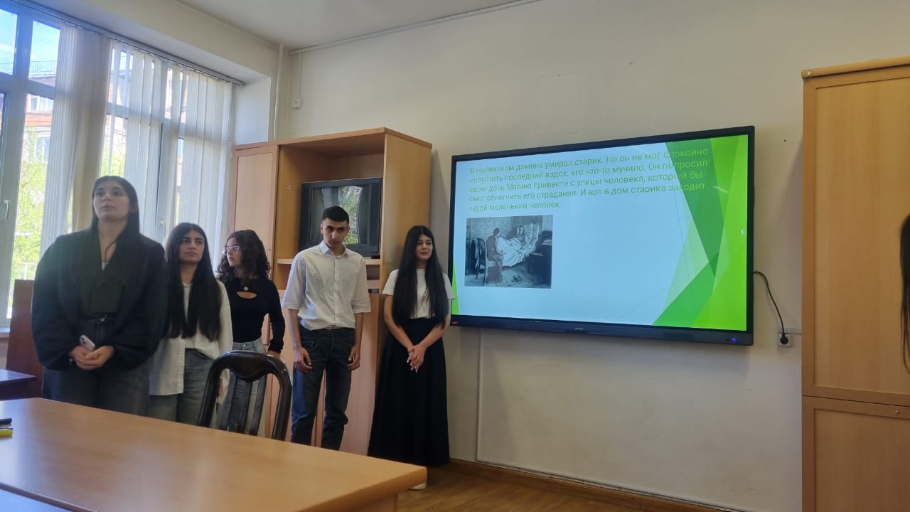 Դասին ներկա էին ֆակուլտետի ուսանողներ և դասախոսներ: Ֆակուլտետի ռուս գրականության ամբիոնի դոցենտ Կարինե Մխիթարյանը շնորհակալություն հայտնեց աշակերտներին հետաքրքիր դասի համար, գովեստի խոսքեր ասաց տեքստերի ճիշտ ընթերցման, մեկնաբանման համար: