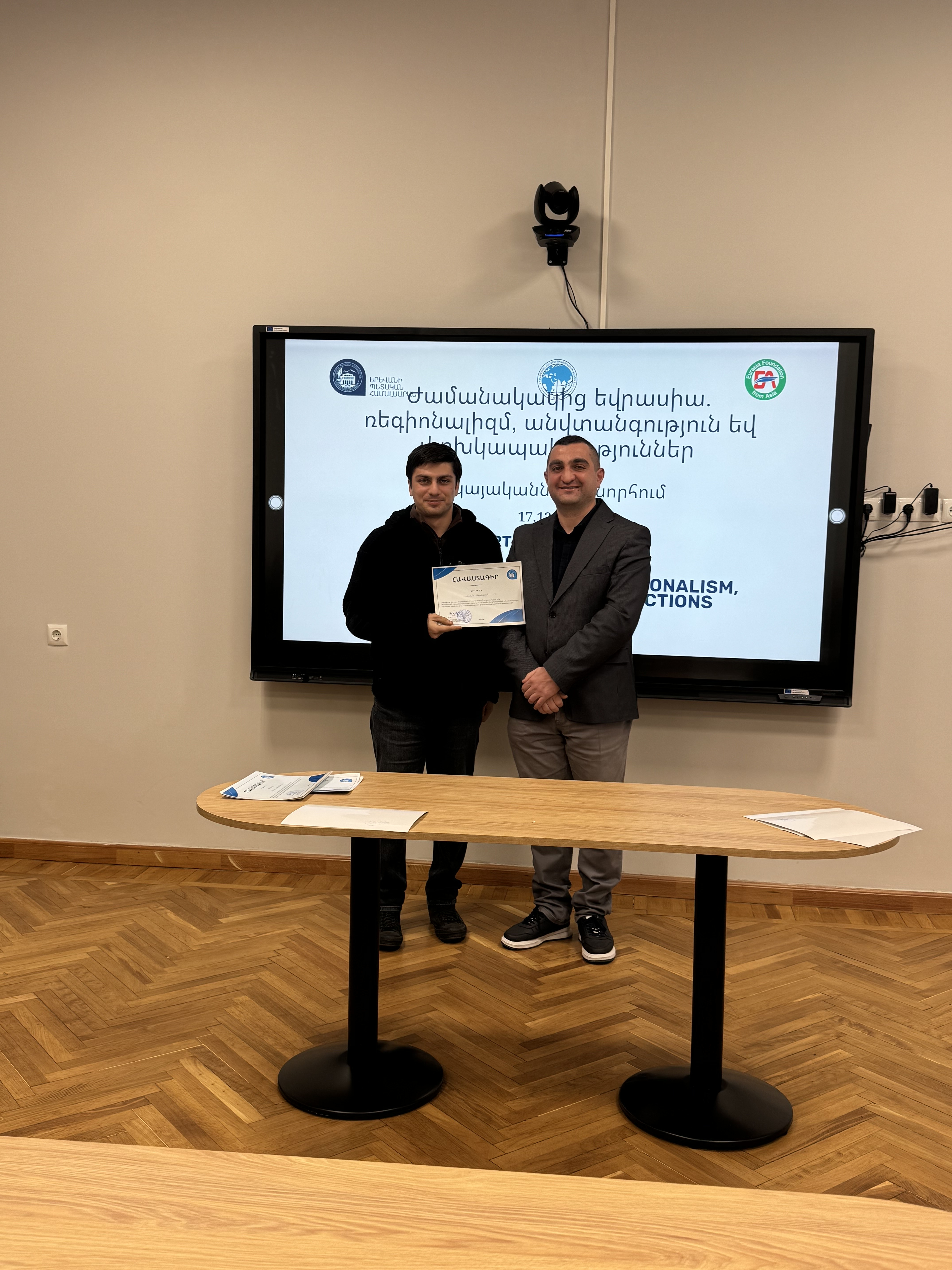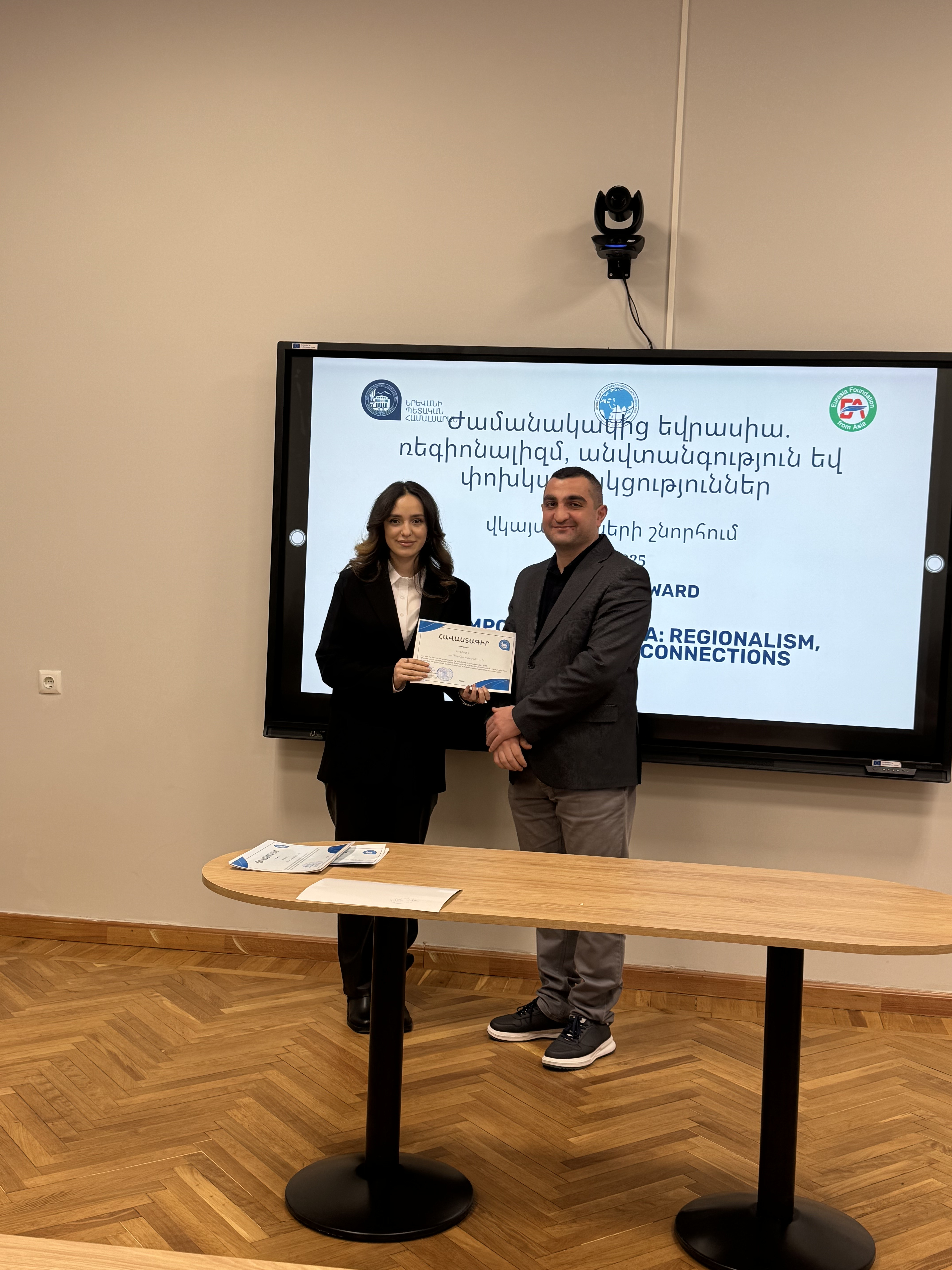«Ժամանակակից Եվրասիա. ռեգիոնալիզմ, անվտանգություն և փոխկապակցություններ» դասընթացին մասնակցած ուսանողները վերջում ստացան հավաստագրեր: