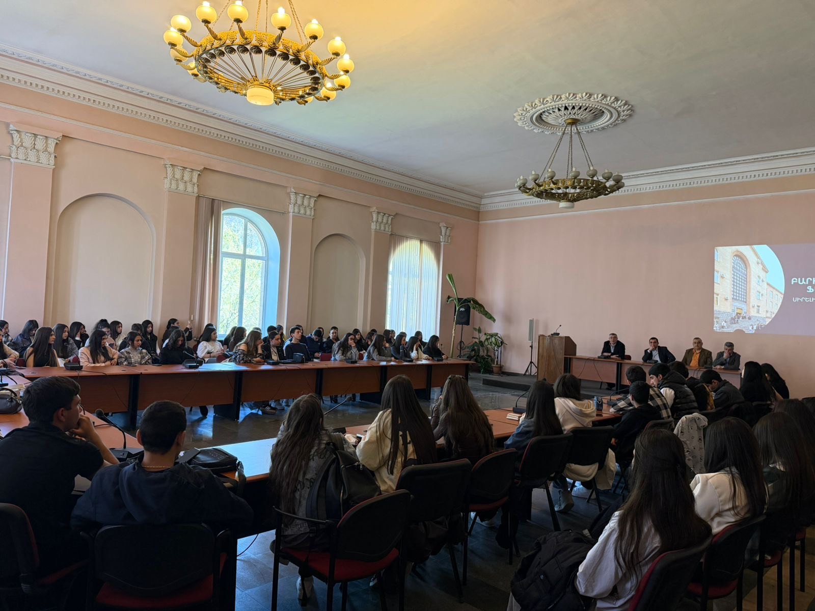 Միջոցառմանը ակտիվ մասնակցություն ունեցան նաև ֆակուլտետի ուսանողները: Նրանք պատրաստել էին բովանդակալից սահիկաշարեր, որոնց միջոցով աշակերտներին ավելի մատչելի և հետաքրքիր ձևով ծանոթացրին ֆակուլտետի կառուցվածքին, ուսանողական խորհրդի գործունեությանը և արտալսարանական կյանքին: