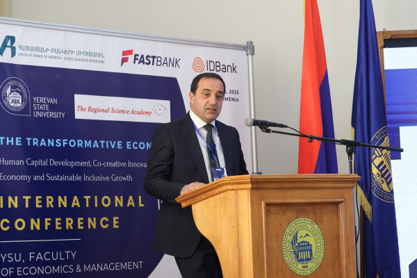 ԵՊՀ տնտեսագիտության և կառավարման ֆակուլտետում ս.թ. հոկտեմբերի 8-10 անցկացվեց «Փոխակերպվող տնտեսություն» խորագրով միջազգային 2-րդ գիտաժողովը, որի կազմակերպմանը աջակցություն ցուցաբերեցին ֆինանսական առաջատար կառույցները՝ «Հայաստանի բանկերի միությունը», «ԱյԴի Բանկ» ՓԲԸ-ն և «Ֆասթ Բանկ» ՓԲԸ-ն։ Ֆակուլտետին աջակցելու նրանց պատրաստակամությունը և կառուցողական մոտեցումը ևս մեկ անգամ վկայում են, որ գործընկեր կառույցները, կարևորելով իրենց սոցիալական պատասխանատվությունը, կանգնած են գիտության կողքին և նպաստում են գիտակրթական նախաձեռնությունների զարգացմանը: