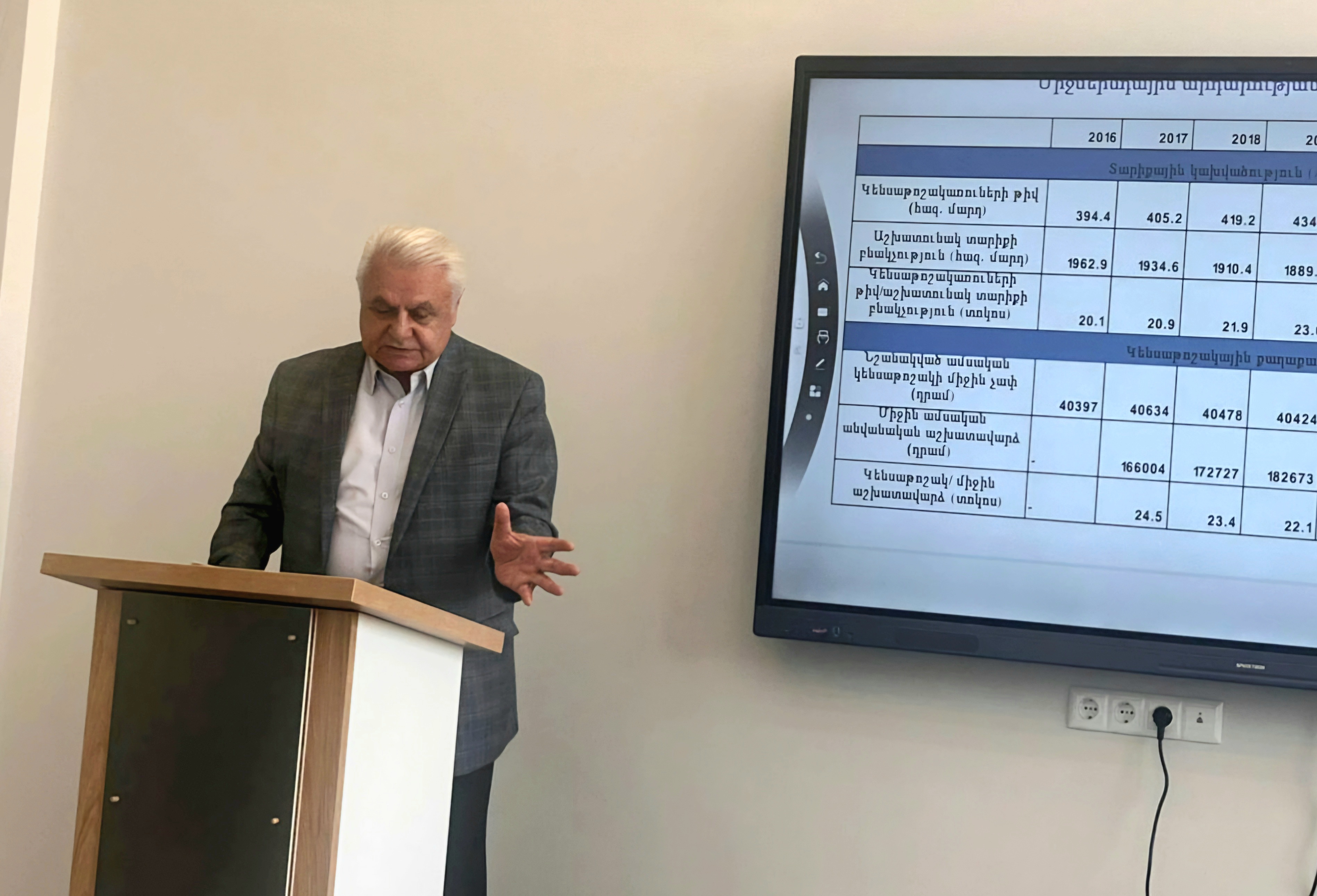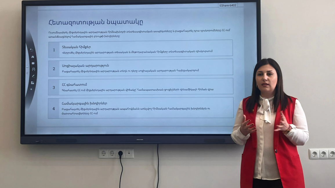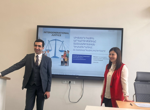 Բանախոսը մատնանշեց, որ կայուն զարգացման համատեքստում կարևոր նշանակություն ունի ռեսուրսների արդյունավետ բաշխման և արդար վերաբաշխման ապահովումը ինչպես ներկա, այնպես էլ ապագա սերունդների միջև։ Վերլուծության արդյունքում ներկայացվեցին ՀՀ-ում միջսերնդային արդարության ձևավորման և ապահովման հիմնական խնդիրները՝ դրանք դիտարկելով սոցիալական քաղաքականության, շրջակա միջավայրի, ներդրումային ակտիվության և պետական պարտքի ցուցիչների դինամիկայի ու փոխկապակցված միտումների համատեքստում։