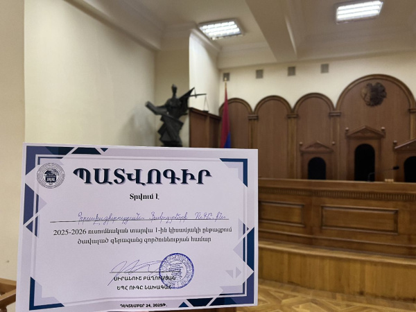 2025-2026 ուսումնական տարվա 1-ին կիսամյակի ընթացքում ծավալած գերազանց գործունեության շնորհիվ Իրավագիտության ֆակուլտետի ՈՒԳԸ-ն (4-րդ կուրսի ուսանողուհի Էլեն Ասատրյանի նախագահությամբ) զբաղեցրել է 1-ին հորիզոնականը: