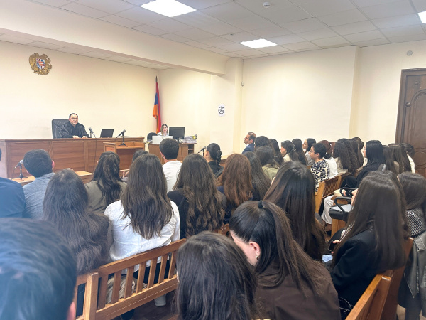 Այցի ընթացքում ուսանողները ներկա են գտնվել դատարանի նախագահ Կ. Զարիկյանի նախագահությամբ անցկացված մի քանի դատական նիստերի՝ գործնականում տեսնելով վարչական գործի նախապատրաստության և դատաքննության ընթացքում իրականացվող դատավարական գործողությունների շրջանակը։