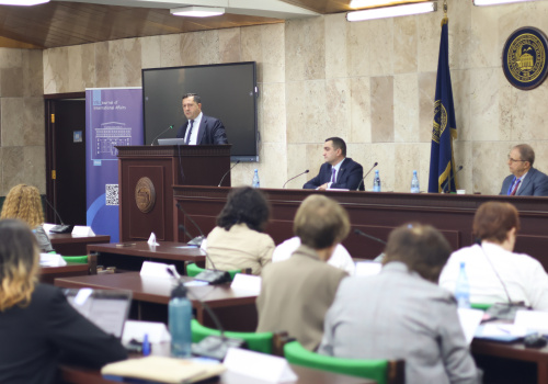 Աշխարհաքաղաքական զարգացումները՝ ակադեմիական մոտեցումներով. ԵՊՀ-ում մեկնարկեց միջազգային գիտաժողով Միջազգային հարաբերությունների ֆակուլտետի նախաձեռնությամբ ԵՊՀ-ում մեկնարկեց «Հետխորհրդային փոխակերպումներ. աշխարհաքաղաքականություն, ազգաշինություն և զարգացում» խորագրով միջազգային գիտաժողովը: Երկօրյա գիտաժողովին զեկուցումներով հանդես են գալիս 20 երկրներից ժամանած հետազոտողներ՝ անդրադառնալով և՛ Հայաստանին առնչվող արտաքին քաղաքական զարգացումներին, և՛ հետխորհրդային աշխարհաքաղաքական փոխակերպումներին, և՛ միջազգային հարաբերություններում լոգիստիկայի դերին՝ միաժամանակ ներկայացնելով նաև այլ երկրների օրինակները: