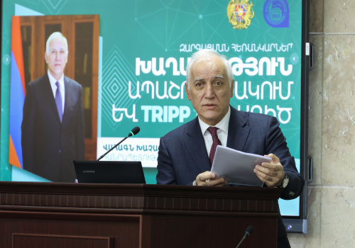 ԵՊՀ-ում էր ՀՀ նախագահ Վահագն Խաչատուրյանը, որը հանդես եկավ «Զարգացման հեռանկարներ, խաղաղություն, ապաշրջափակում և «TRIPP» նախագիծ» խորագրով բանախոսությամբ։ Նա ուսանողների հետ քննարկեց տարածաշրջանային համագործակցությանը և երկրի տնտեսական զարգացման հեռանկարներին վերաբերող հարցեր։