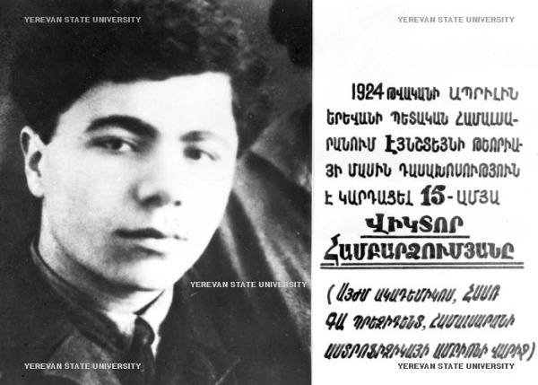 Դեռևս 1924 թ․ 15-ամյա Վիկտոր Համբարձումյանը Էյնշտեյնի թեորիայի մասին դասախոսություն է կարդացել Երևանի պետական համալսարանում։ Հետագայում արդեն Վիկտոր Համբարձումյանը ոչ միայն դասավանդում էր համալսարանում, այլև գիտական հայտնագործություններ կատարում։ 1930-ականներից սկսած՝ նրա գիտական հետաքրքրությունները աստիճանաբար վերածվեցին խոր ուսումնասիրությունների, որոնք բարձր նշաձող սահմանեցին ԵՊՀ-ում աստղաֆիզիկայի զարգացման համար։