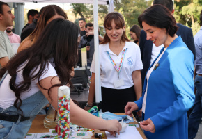 ԵՊՀ ՍԹԵՄ ավագ դպրոցի տաղավարում այցելուները ծանոթանում են դպրոցի ընդունելության կարգին, կրթական ծրագրերին՝ հնարավորություն ունենալով ՍԹԵՄ դպրոցի աշակերտներից լսելու ուսումնական գործընթացի մասին հետաքրքիր պատմություններ։