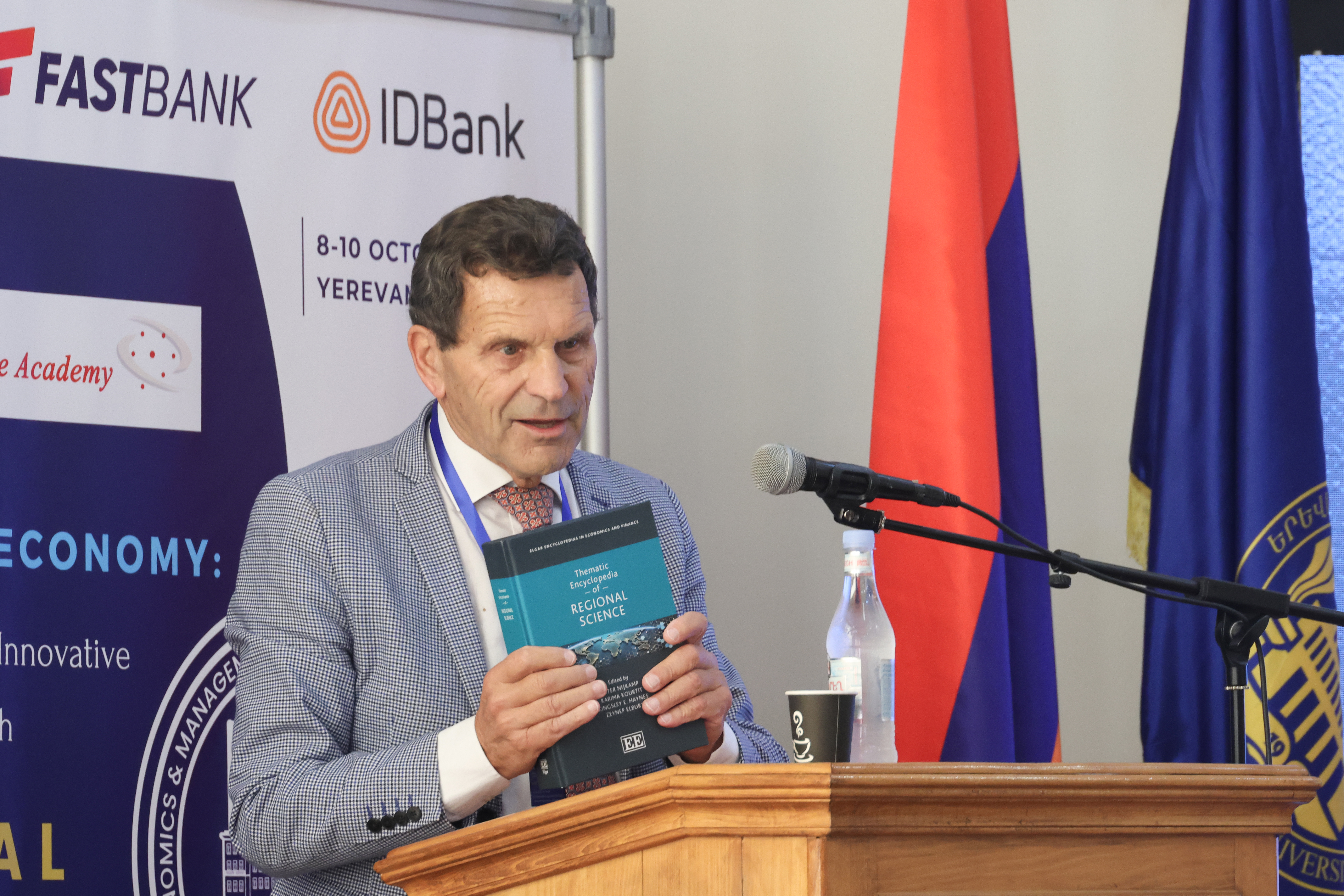 Վերջինս իր խոսքում նշեց․ «Ելնելով այսօր աշխարհում առկա տնտեսական և քաղաքական իրադրություններից՝ առավել քան երբևէ կարևոր է խորապես քննարկել այն թեմաները, որոնց պիտի անդրադառնանք գիտաժողովի շրջանակում։ Դրանց թվում են՝ փոխակերպվող տնտեսությունը, անկայուն ժամանակներում տնտեսության զարգացումը, քաղաքական փոփոխությունները, տարածքային խնդիրները, կլիմայական մարտահրավերները, ինստիտուցիոնալ փոփոխությունները, միջազգային համագործակցությունը և այլ թեմաներ։ Այսպիսով, ուրախ եմ, որ այսօր այստեղ ենք և հնարավորություն ունենք իրականացնելու այն, ինչին միտված է գիտությունը՝ կառուցելու գիտելիքի ամուր և հուսալի հիմք»։