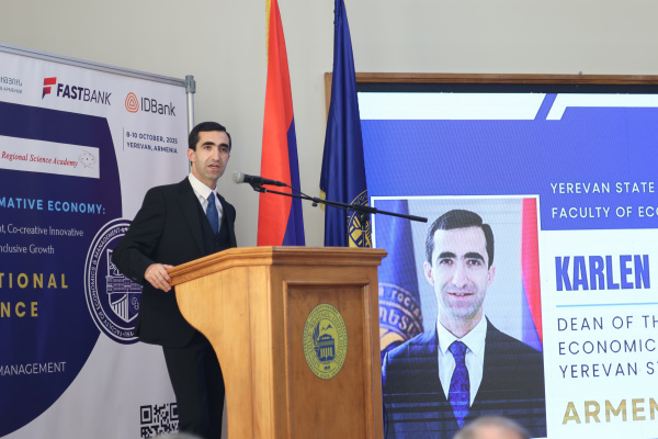 ԵՊՀ տնտեսագիտության և կառավարման ֆակուլտետում մեկնարկեց «Փոխակերպվող տնտեսություն. մարդկային կապիտալի զարգացում, ստեղծարար նորարարական տնտեսություն, կայուն ներառական աճ» խորագրով միջազգային գիտաժողովը: Արդեն երկրորդ անգամ անցկացվող գիտաժողովը կազմակերպվում է ֆակուլտետի և Տարածաշրջանային գիտության ակադեմիայի համագործակցության շրջանակում: