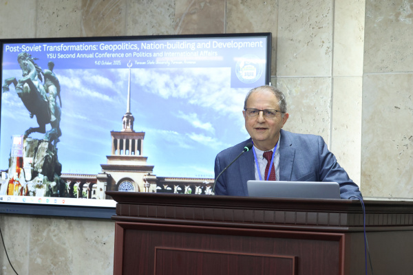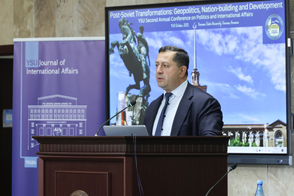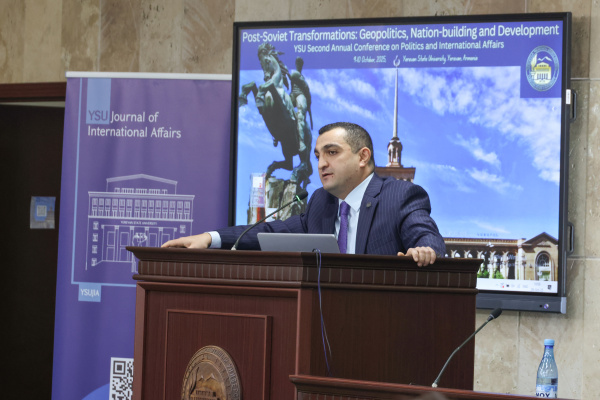 Միջազգային հարաբերությունների ֆակուլտետի նախաձեռնությամբ ԵՊՀ-ում մեկնարկեց «Հետխորհրդային փոխակերպումներ. աշխարհաքաղաքականություն, ազգաշինություն և զարգացում» խորագրով միջազգային գիտաժողովը: Երկօրյա գիտաժողովին զեկուցումներով հանդես են գալիս 20 երկրներից ժամանած հետազոտողներ՝ անդրադառնալով և՛ Հայաստանին առնչվող արտաքին քաղաքական զարգացումներին, և՛ հետխորհրդային աշխարհաքաղաքական փոխակերպումներին, և՛ միջազգային հարաբերություններում լոգիստիկայի դերին՝ միաժամանակ ներկայացնելով նաև այլ երկրների օրինակները:
