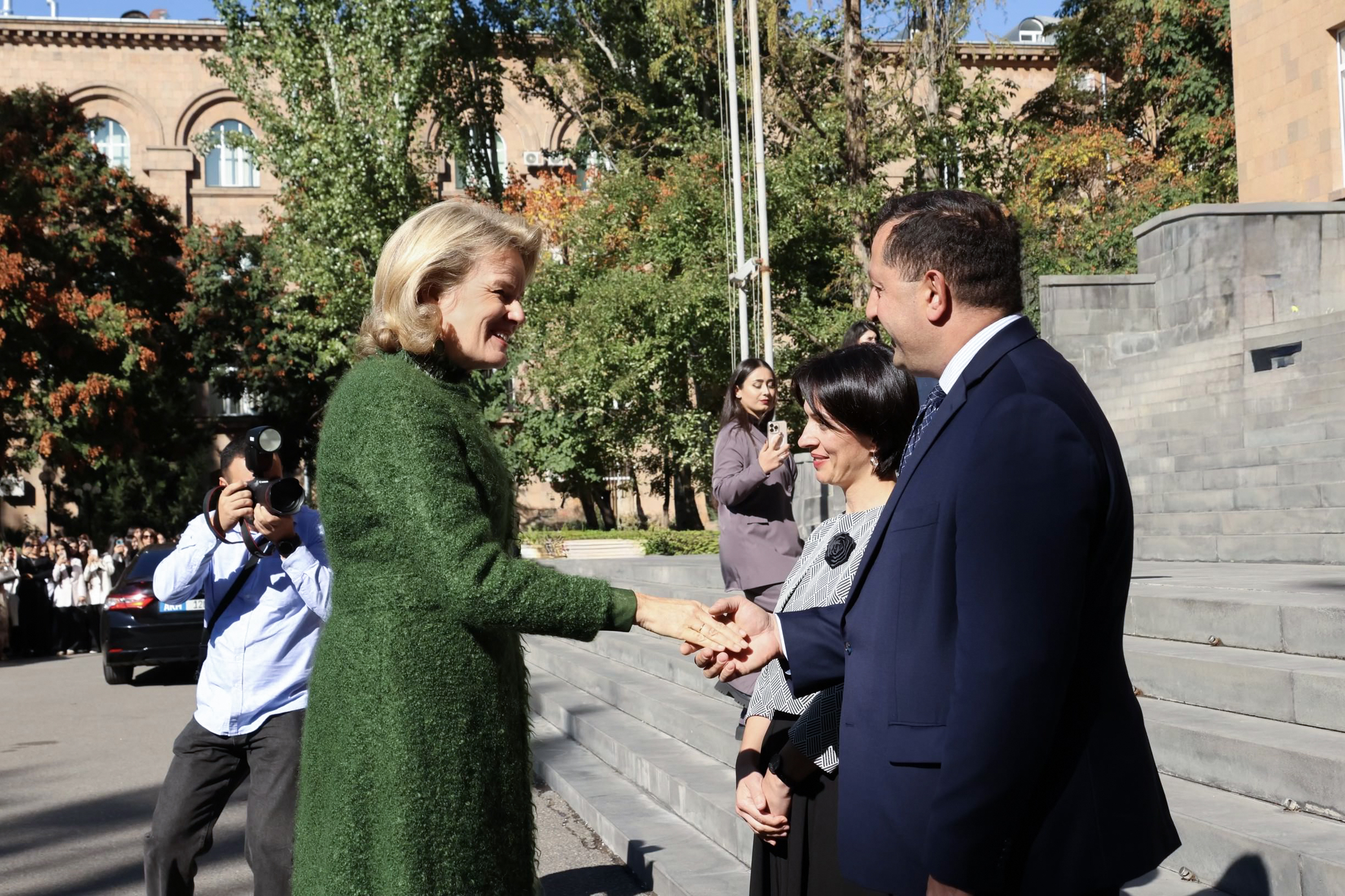 Աշխատանքային այցով Հայաստանում գտնվող Բելգիայի Թագավորության թագուհի Մաթիլդան այցելեց Երևանի պետական համալսարան՝ հանդիպելու ԵՊՀ ուսանողների հետ։ Այցի շրջանակում կարևորվեց կրթության, ինչպես նաև երիտասարդության դերակատարումը կայուն զարգացման նպատակների իրականացման գործընթացում։