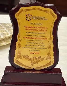 Արտաշես Խուրշուդյանը՝ Լոնդոնի թվային բիզնեսի համալսարանի հեղինակավոր մրցանակաբաշխության մրցանակակիր