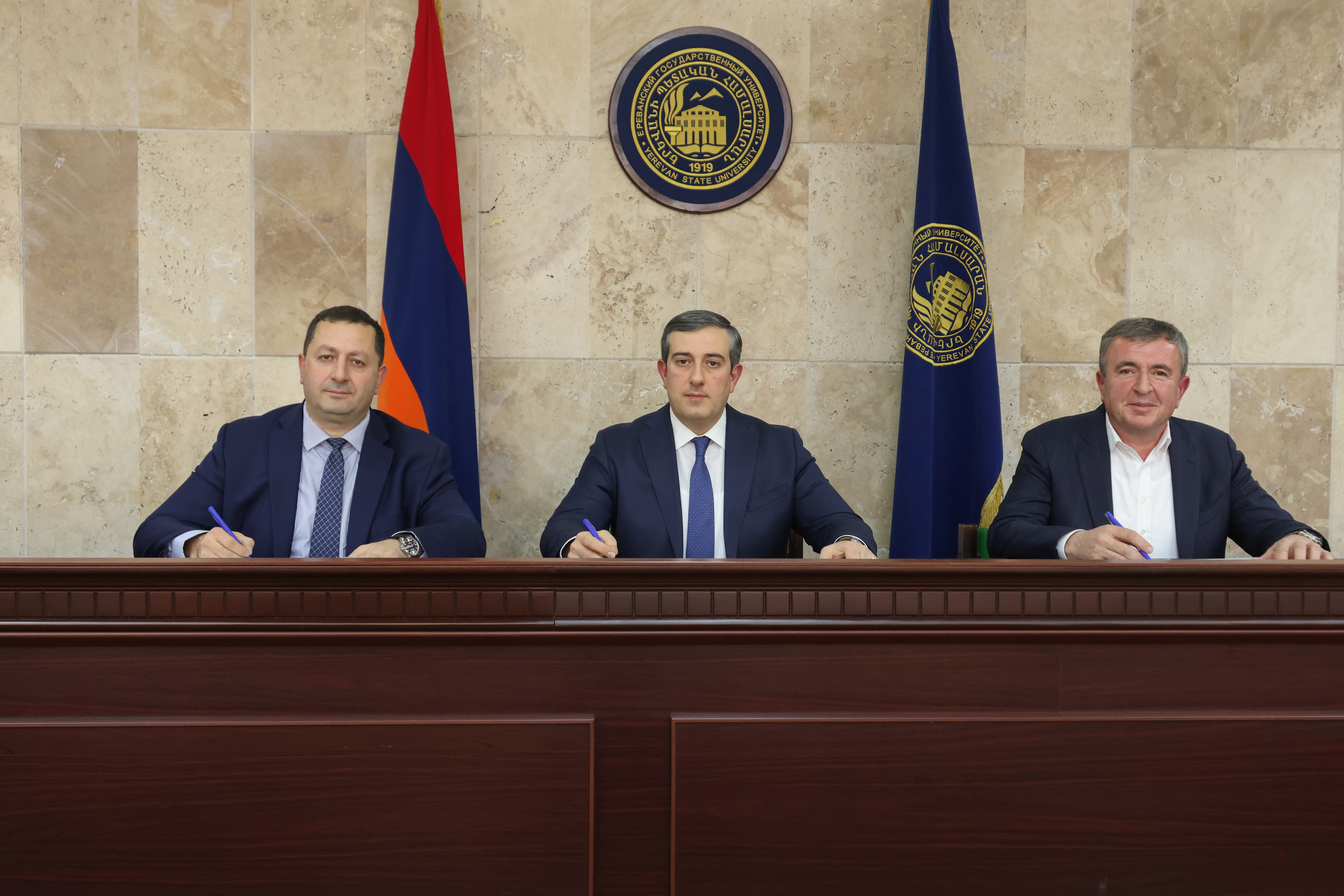 ԵՊՀ ռեկտոր Հովհաննես Հովհաննիսյանը, Բարձրագույն դատական խորհրդի նախագահ Արթուր Աթաբեկյանը և Իրավագիտության ֆակուլտետի դեկան Հարություն Խաչիկյանը ստորագրեցին համագործակցության հուշագիր՝ կարևորելով իրավաբանական կրթություն-գիտություն-պրակտիկա շղթայական համագործակցության արդյունավետ, կառուցողական և շարունակական զարգացումը։