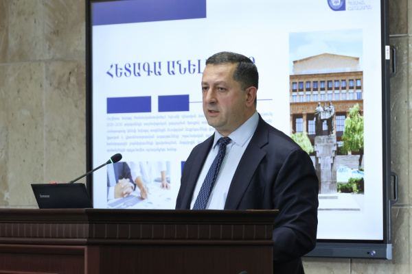 «2024–2025 ուսումնական տարին Երևանի պետական համալսարանի համար կարելի է բնութագրել որպես ռազմավարական մեկնարկի և համակարգային վերափոխման առաջին ամբողջական փուլ։ Սա այն տարին էր, երբ ԵՊՀ-ն արդեն ոչ թե ձևակերպում էր իր զարգացման ուղղությունները, այլ իրագործում էր դրանք՝ արձանագրելով հստակ չափելի արդյունքներ, սակայն գիտակցելով, որ խոսքը երկարաժամկետ փոփոխությունների մասին է։ 2025–2030 թվականների զարգացման ռազմավարության ընդունումը համալսարանի կյանքում նշանավորեց որակապես նոր շրջափուլ, երբ առաջնահերթությունը տրվում է ոչ թե առանձին նախաձեռնություններին, այլ փոխկապակցված քաղաքականություններին, համակարգային գործիքներին և կայուն ինստիտուցիոնալ լուծումներին։ Հաշվետու ուսումնական տարվա ընթացքում մեր հիմնական նպատակը հենց այդ ռազմավարության տրամաբանությունը համալսարանի առօրյա գործառույթների մեջ ներդնելն էր»,- նշեց ԵՊՀ ռեկտորը և հավելեց, որ ներկայացվող հաշվետվությունը կառուցված է այդ ռազմավարության տրամաբանությամբ։