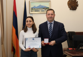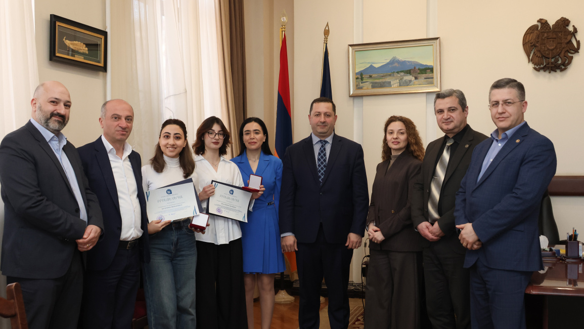 ԵՊՀ ռեկտոր Հովհաննես Հովհաննիսյանը բրոնզե մեդալով պարգևատրեց ՀՀ բարձրագույն մասնագիտական կրթական ծրագրեր իրականացնող ուսումնական հաստատությունների լավագույն առաջադիմությամբ ուսանողների անվանական կրթաթոշակների տրամադրման 2025 թվականի մրցույթի («Լավագույն ուսանող») արդյունքներով ԵՊՀ հաղթողներին՝ Կենսաբանության ֆակուլտետի «Կենսաքիմիա և կենսատեխնոլոգիա» բակալավրի կրթական ծրագրի 4-րդ կուրսի ուսանող Սոնա Սարգսյանին (առաջին տեղ) և Հայ բանասիրության ֆակուլտետի «Հայ գրականություն» մագիստրոսական կրթական ծրագրի 2-րդ կուրսի ուսանող Անի Թադևոսյանին (երկրորդ տեղ)։
