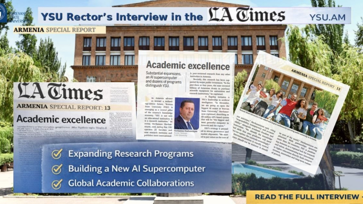 «Los Angeles Times»-ը տարածել է «Armenia Special Report» խորագրով հատուկ զեկույցը, որտեղ ներկայացվում է Հայաստանի տնտեսական, տեխնոլոգիական և ներդրումային զարգացման ներկայիս փուլը։ Զեկույցի շրջանակում հրապարակվել է նաև ԵՊՀ ռեկտոր Հովհաննես Հովհաննիսյանի հարցազրույցը, որտեղ ընդգծվում է համալսարանի դերակատարումը երկրի գիտակրթական և նորարարական առաջընթացում։