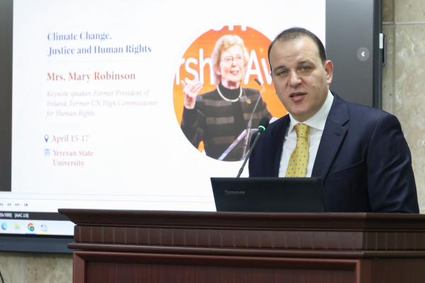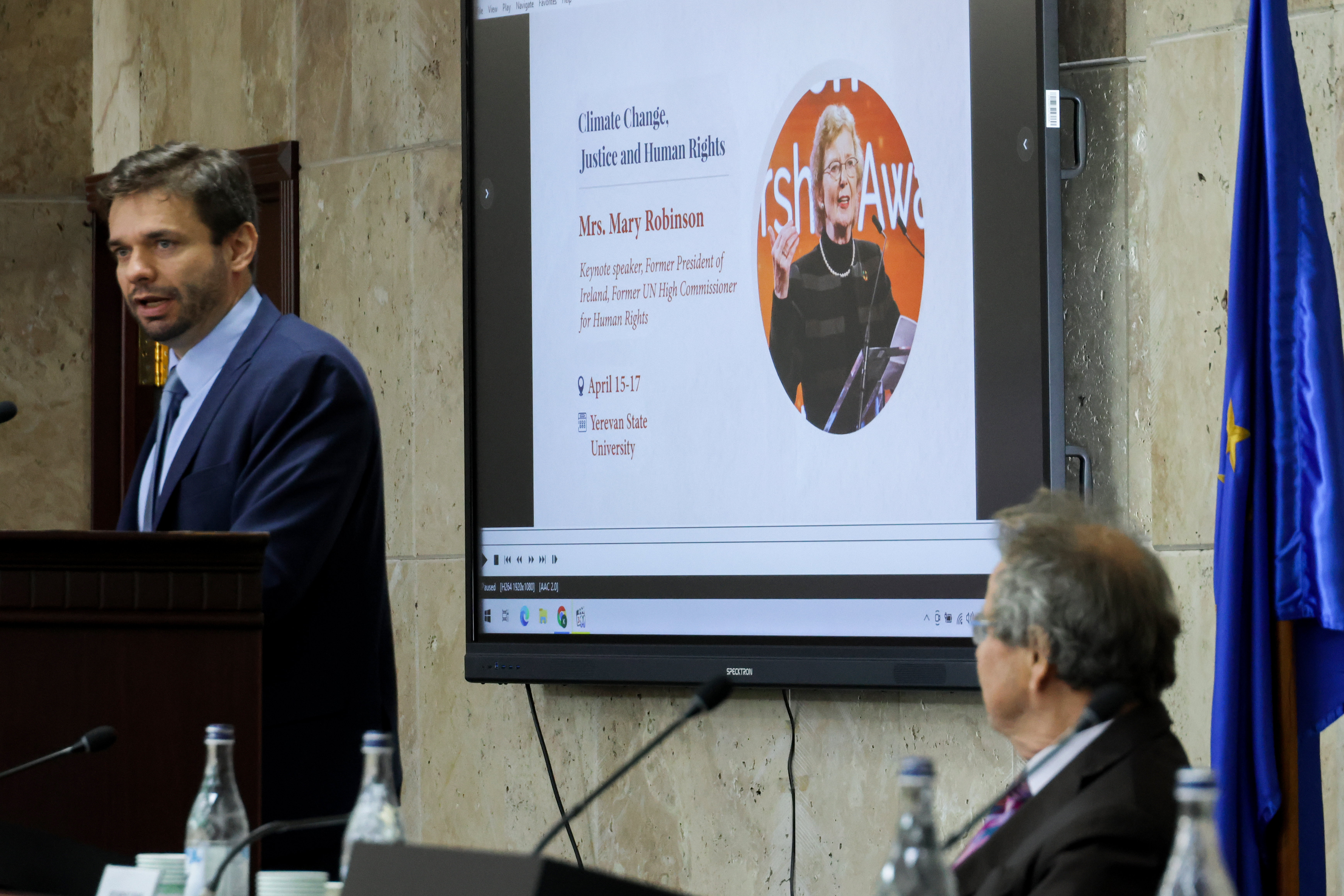 ԵՊՀ-ում մեկնարկեց «Կլիմայի փոփոխություն, արդարություն և մարդու իրավունքներ» խորագրով միջազգային գիտաժողովը, որը համախմբեց ակադեմիական հանրույթի, միջազգային կազմակերպությունների և քաղաքացիական հասարակության ներկայացուցիչներին։ Եռօրյա միջոցառման ընթացքում կքննարկվեն կլիմայի փոփոխության, արդարության, մարդու իրավունքների և անվտանգության փոխկապակցվածության հիմնահարցերը։